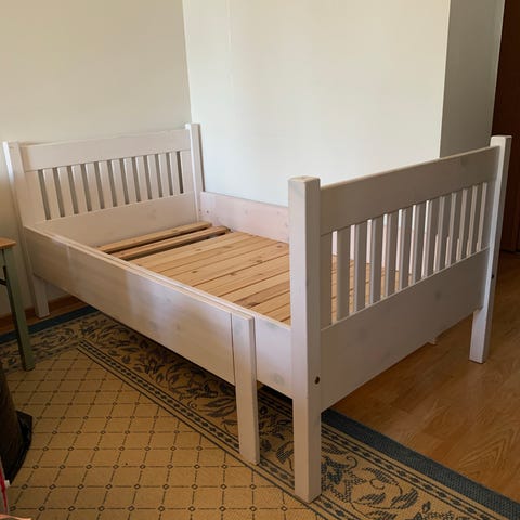 Siisti lasten jatkettava sänky. Jotain pieniä käytön jälkiä on. Päädyn korkeus 61cm. Päädyn leveys 85cm. Patjan leveys tulisi olla 75cm. Lyhyimmillään sänky 103cm ja pisimmillään 190cm. Lohja