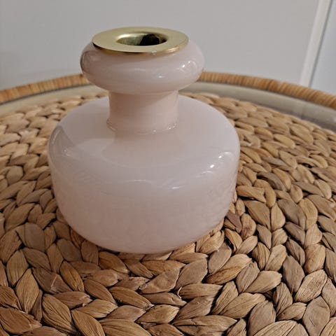 Uusi, paketissa oleva Marimekon Puteli kynttilänjalka. Väri Sand.