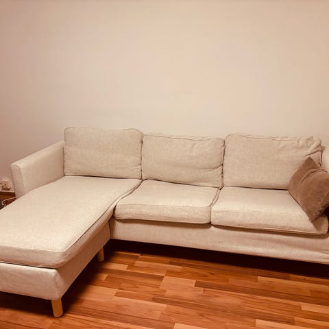 Ikea Vallentuna sohvakokonaisuus. 2 kpl 80 x 80 cm avattavaa rahia ja 2 kpl 100 x 80 cm moduulia. Selkä-/käsinojia 4 kpl, kaksi 105 cm ja kaksi 87 cm.