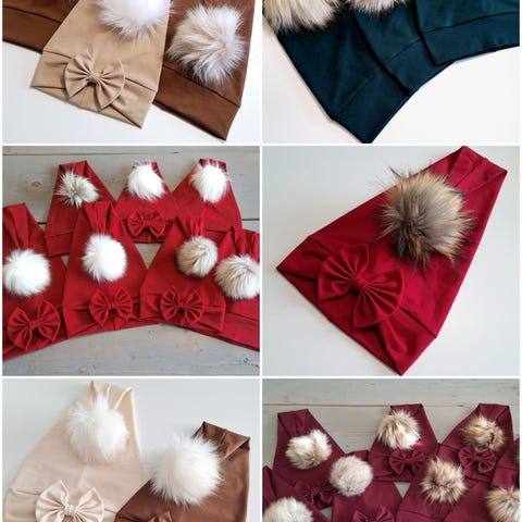 Tupsuissa on narut ja tupsut on irroitettavissa esim. pesua varten. Tupsut on valmistettu käsityönä Euroopassa. Tupsun sijaan hattuun voi valita myös kulkusen tai pienemmän luonnonvalkoisen langasta tehdyn tupsun (katso viimeinen kuva), tällöin hatun hinta on 13€/15€.