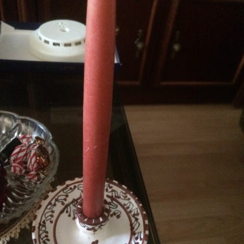 Virolainen tonttuaiheinen kynttilänjalka. Korkeus 22 cm. Nouto Suutarilasta tai tapaaminen sopimuksen mukaan.