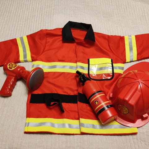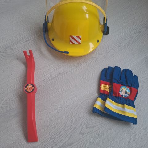 Lasten palomies asu varusteineen. Hyvä leikitty kunto, käytönjälkiä on. Soveltuva noin 4-7 vuotiaalle. Takissa heijastinprintissä halkeamaa, pehmeässä ”kypärässä” sisäosan ”paperikangas” osin kulunut, kovan kypärän visiiri ”ommeltu” kiinni, kirves lliimattu. Eläimetön, hajusteeton ja savuton koti.