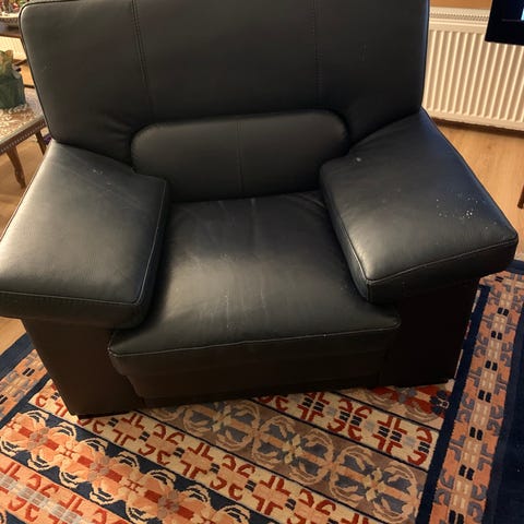 Annetaan koirien käytössä ollut nahkainen Ikean divaani. Pikainen nouto, lähtee sorttikuormaan muutoin.