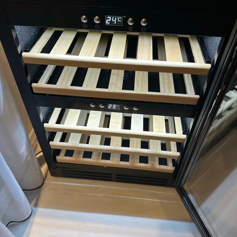 Samsungin viinikaappi (tarkempi malli viimeisessä kuvassa). 5 tasoa ja alalaattikko.
