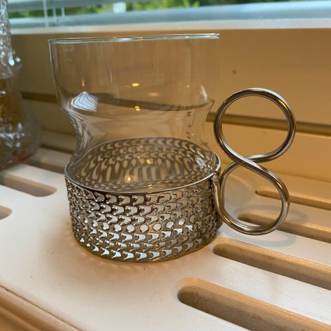 Timo Sarpanevan suunnittelemat lasit teräspidikkeellä. Iittala. Tarra puuttuu. Pakkaus on alkuperäinen ja nämä kaksi glögilasia 1980-luvulta. Nouto/ toridiili.