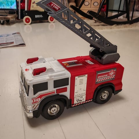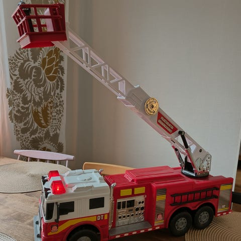 Seuraavalle leikkijälle. Siniset vilkkuvalot ja sireenin ääni. Ylös vedettävät tikkaat.