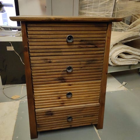 Edellisen työpaikan osaston alasajosta saatu lipasto.