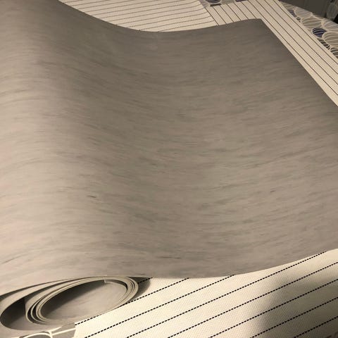 Annetaan keittiön käytetty muovimatto. Lähtee rullaamalla pois. Koko arviolta 3 x 2,5 m.