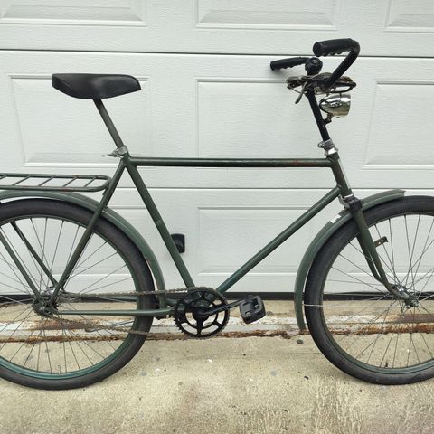 Tarjolla siistikuntoinen 1-vaihteinen Helkama AINO. Tukevat profiilivanteet, rengaskoko 26”. Uudet päälikumit kevyellä maastokuviolla, kokomerkintä 54-584. Rungon korkeus 52cm. Alkuperäinen AVA -runkolukko kahdella avaimella. Leveä ja mukana jousisatula. Heijastimet takana, pinnoissa ja polkimissa, uusi etuvalo. Seisontatuki löytyy. Mukana myös taakkahihna ja pumppu.