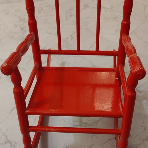 Jollyroomista ostettu, lasten puinen keinutuoli vaaleanpunainen. Seuraavalle pienelle keinujalle.