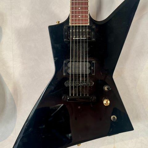 Kitarasta on muutamasta kohtaa maali hieman halkeillut. Yhtä dingiä olen vähän korjannut kynsilakalla. Myöskään tonepotikkaa ei ole kiinni ja volume on siirretty alempaan potikkareikään.