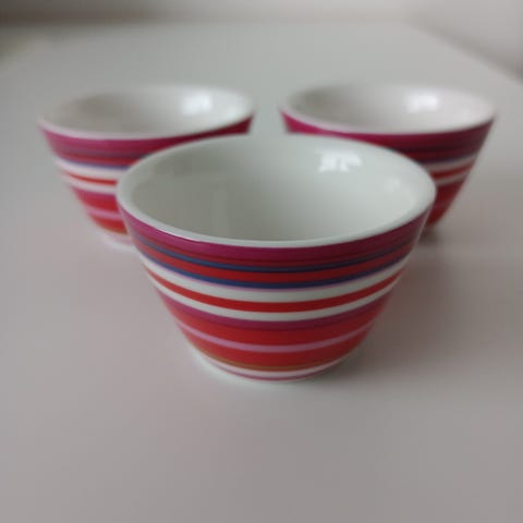 Myydään Iittalan 3 munakuppia. Vetoisuus 0,5 dl. Kaikki kolme erittäin hyväkuntoisia.