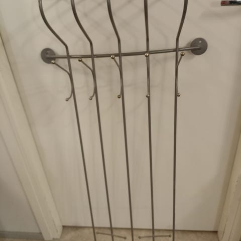 Metallinen naulakko, painava ja tukeva. Sävy hieman kiiltävä kuparimainen rusehtava.