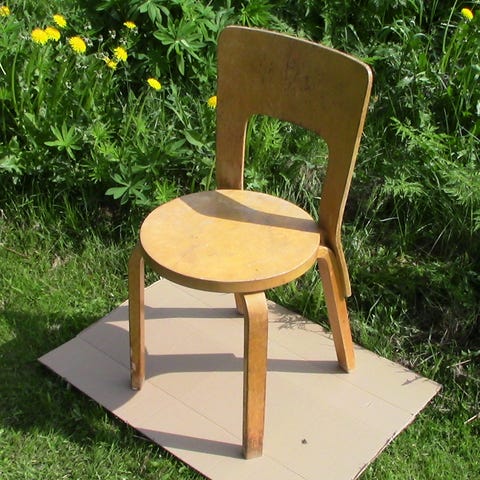 Keskeneräinen kunnostusprojekti Artek 66 -tuoli. Hiottu.