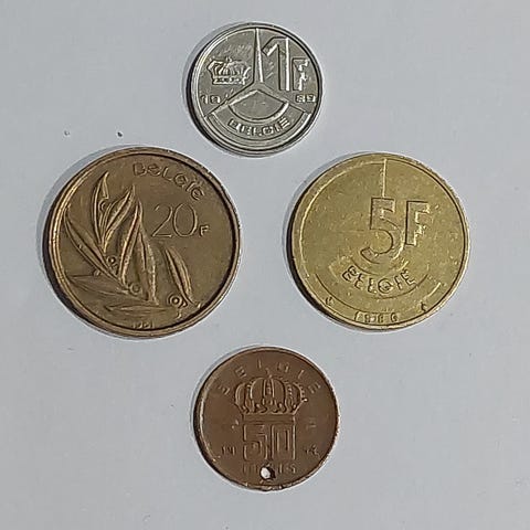 🇧🇪 Belgia 1Fr 1950-80 7 kpl