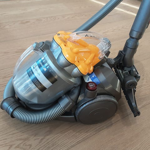 Dyson V8 langaton pölynimuri. Sisältää useita lisävarusteita, kuten erilaisia suulakkeita ja harjasuutin. Sopii kodin siivoukseen ilman johtoa.