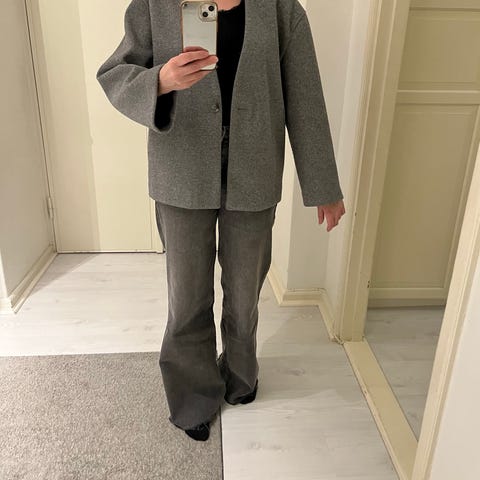 Harmaa villakangastakki koko S. Kerran käytetty.
