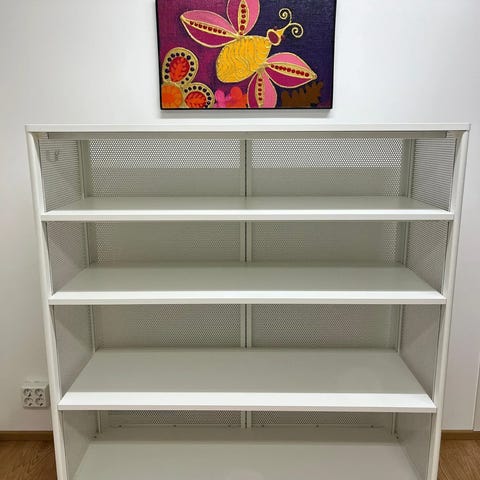 Ikean vanhan mallin Bekant arkistohylly/kaappi (tätä mallia ei enää ole myynnissä). Hyvässä kunnossa. Vetolaatikon pikkuhyllyssä vähän kulumajälkeä.