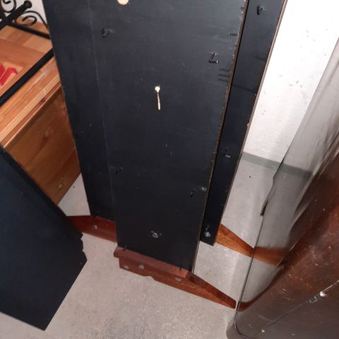 Teak-kirjahylly, jossa liukuovellinen alaosa.