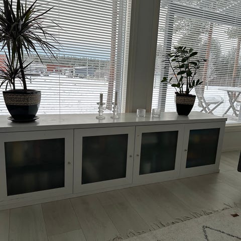 Täyspuinen tv-taso, joka on maalattu valkoiseksi. Todella tukeva ja paljon säilytystilaa. Myydään nopeimmalle hakijalle. Haku Tuirasta.