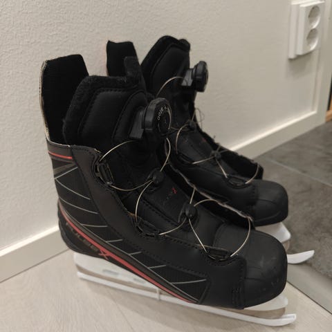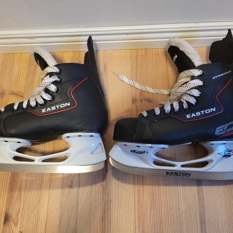 Vähän käytetyt Easton Synergy EQ10 jääkiekkoluistimet kokoa 4 (vastaa 37). Pohjallisen pituus noin 24 cm (kuva).