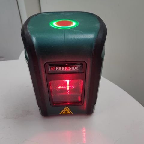 Ristiviivalaser pysty ja vaakalinja. Punainen säde. Vähällä käytöllä ollut.