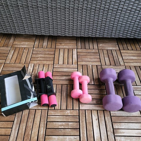 Käytetty kunto, naarmuja pinnassa, ei vaikuta käyttöön, soveltuu erilaisiin kuntosaliharjoituksiin ja kotitreeniin.