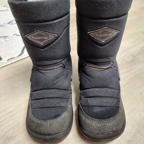 Kuoma - lasten talvikengät, koko 28, unisex-malli, sinisen väriset. Käytetty on mutta aivan ehjät eikä pahempia kulumia.