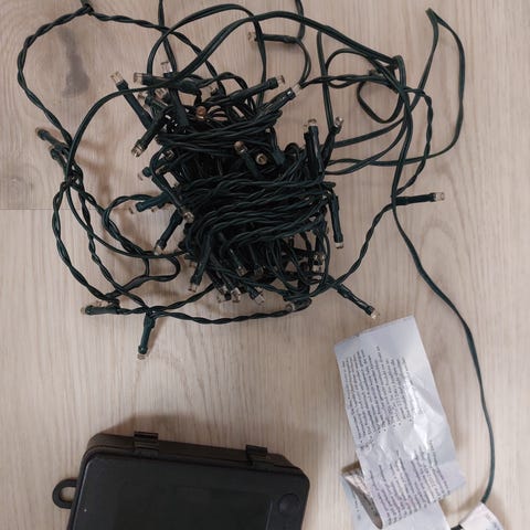 Eli yhteensä 32kpl. Liekin saa myös ei-lepattavaksi. Alkuperäiset pakkaukset ja kauko-ohjain on tallella, mutta 3 klipsiä on hukkateillä. Hintaan sisältyy 90kpl käyttämätöntä AAA-paristoa.