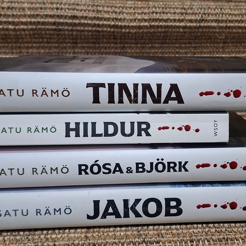 Suosittu islantilaisiin maisemiin sijoitettu dekkarisarja. Yhdessä kirjassa mukana Satu Rämön signeeraus. Vaikkapa joululahjaksi. Kaikki kerralla. Nouto Pakilasta.