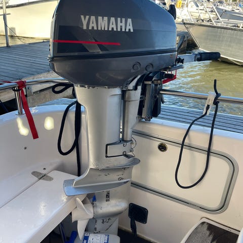 Tässä kaupan kalastuskilpailusta voitettu täysin uusi Yamaha 2.5hp 4-tahtimoottori. Moottoria ei ole otettu pois pakkauksista. Moottori on nähtävillä Turussa.