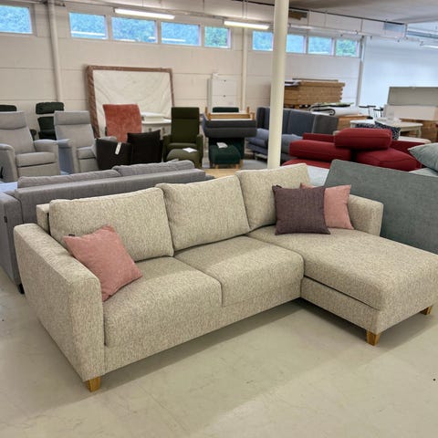 Kulmasohva mustalla kankaalla. Sohvassa on irrotettavat tyynyt ja puiset jalat. Sopii olohuoneeseen istumapaikaksi useammalle henkilölle. Voidaan myös vaihtaa esim halpaan autoon