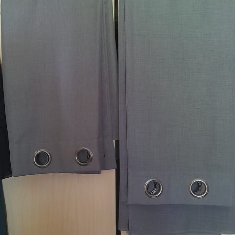 Verhot harmaalla värillä ja metallisilla purjerenkailla
