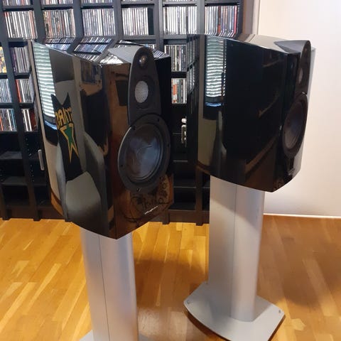 Mukaan: kaiuttimet, jalustat ja kuitti.