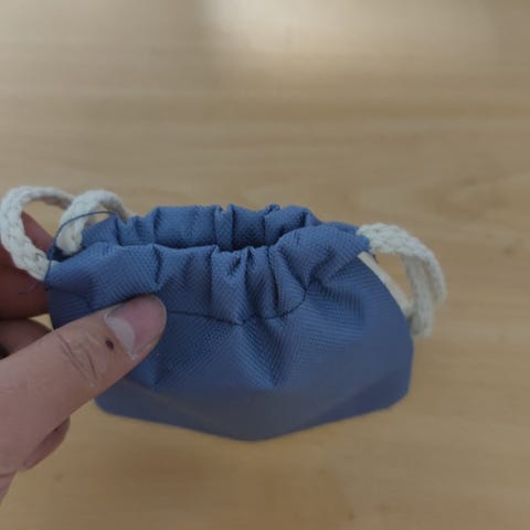 Kankaasta ommeltu kukkaro/pussukka. Käyttämätön. Koko n. 10x10cm.
