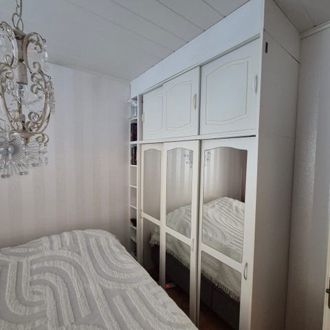 Kaapisto. Käytönjälkiä on ja yhdestä kaapinovesta on sarana irti, mutta osaava osaa varmasti korjata. Yhden palan tästä myös saa erilleen, eli menee ns. kahteen osaan.