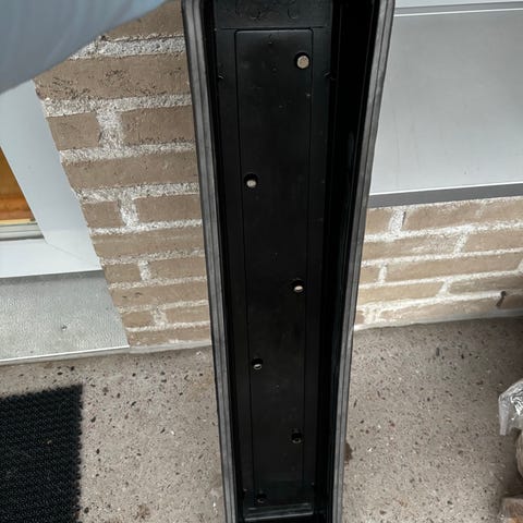 Altakasteleva kukkalaatikko / parvekelaatikko kukille. Leveys 75cm. Mukana myös metalliset kiinnikkeet. Perus siistissä kunnossa, sisäpuolella normaalia kulumaa aiemmista istutuksista.