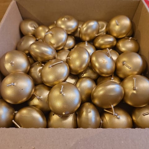 Torniossa käsityönä tehtyjä kruunukynttilöitä.