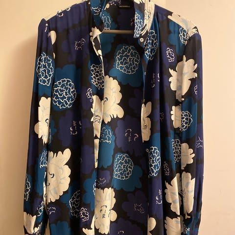 Puna/musta raitainen Marimekon kauluspaita. Koko paidassa olevassa lapussa 38. Uutta vastaavassa kunnossa.