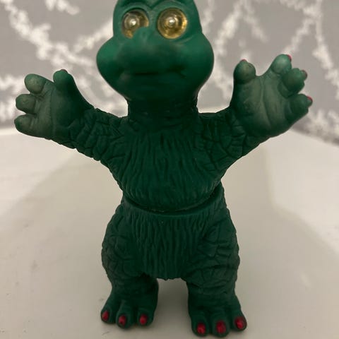 sinisenä delfiinin muotoisena. Soveltuu lasten leikkeihin ja koristeeksi. Keräilyhahmo harvinainen.