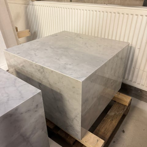 Myynnissä varastossa oleva Plinth-marmoripöytä, koko 60 x 40 x K40 cm. Materiaali on Bianco Carrara -marmoria. Marmoripöytä on kiiltäväpintainen ja tehty 10 mm paksuisesta materiaalista, joten se on kevyempi (paino n. 30 kg) kuin tyypillisesti 20 mm paksuisesta materiaalista tehdyt pöydät. Lähetämme mielellämme lisää kuvia pyydettäessä. Hinta noudettuna verstaaltamme Siuntiosta. Tarvittaessa voimme antaa kuljetustarjouksen.