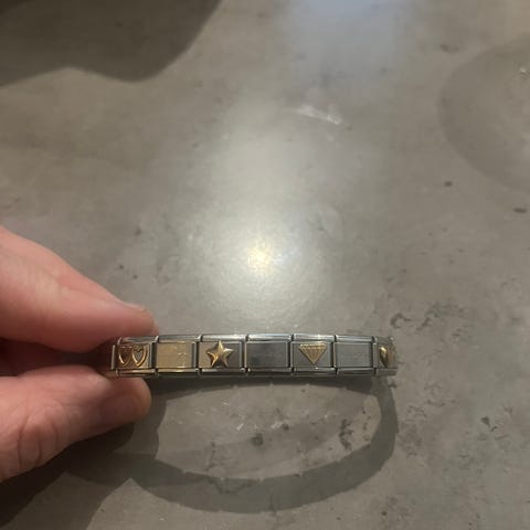 Aito Nomination rannekoru 17 palalla. Sisältää aidot tähti ja s -palat. Maksu Mobilepay ja nouto Karsikosta.