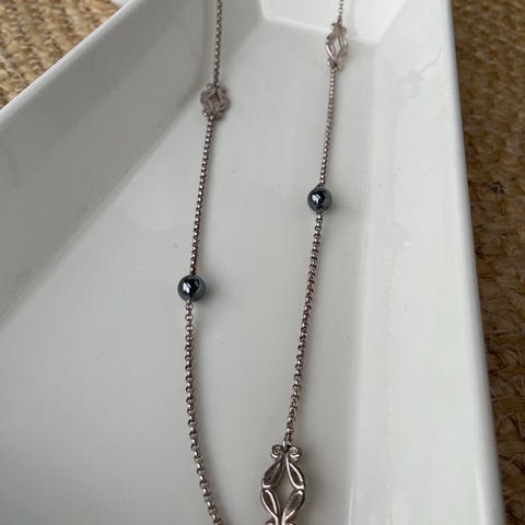 Hopeinen Iris-kaulakoru, ametistikivet. Alkuperäispakkauksessa, sopii lahjaksi.