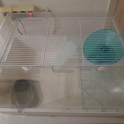 Metallinen lemmikkihäkki, jossa on pyörät helppoa siirtoa varten. Häkissä on useita tasoja, ruokakuppeja ja juomapullo, sopii pienille lemmikeille kuten hamstereille tai rotille. Väri musta.