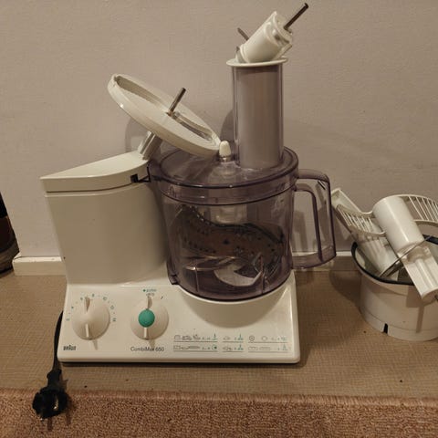 Monipuolinen keittiökone. Kaksi kertaa raastetta tehty ja kaappiin jäänyt. Pois pölyttymästä.