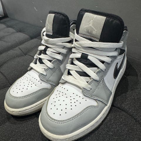 Nike Air Jordan 1 koripallokengät, koko 44. Värit musta, valkoinen ja punainen. Valmistettu nahasta ja synteettisistä materiaaleista. Soveltuvat koripallon pelaamiseen.