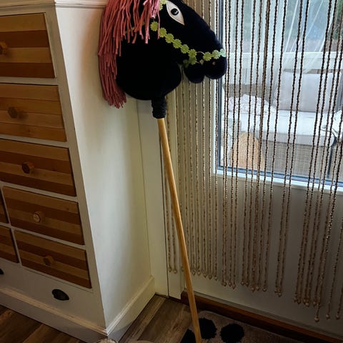 Itse tehty laadukas keppihevonen. Pituus 77cm. Melko painava, ei siis sovellu ihan pienellä ratsastajalle.