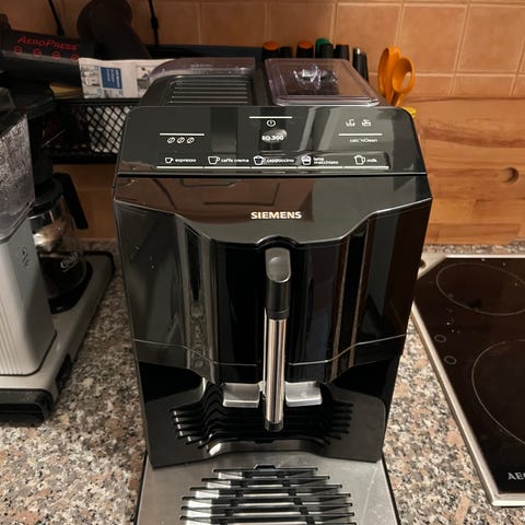 Laite paketissa ja avaamaton. Tekee neljää erilaista kahvia valinnan mukaan yhdellä napin painalluksella. Helppo käyttää ja huoltaa. Itsellä samanlainen käytössä, tämä jäi ylimääräiseksi. Uuden hinta kaupassa 499 euroa.