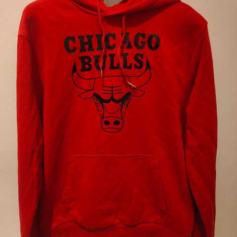 Punainen New Era Chicago Bulls collegepaita. Edessä isolla BULLS -teksti ja oikeassa hihassa Bullsin logo.Vasemmassa hihassa valkoinen töhry, muuten paita on hyvä kuntoinen. Töhry on huomioitu hinnassa.