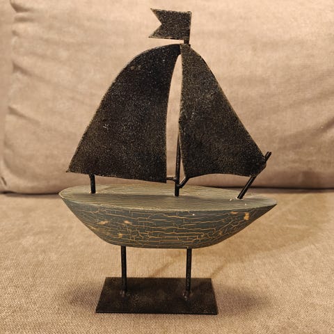 2 kpl, tiffany tyyliset purjeveneet etsivät uutta satamaa. Pituus 20 cm ja 25 cm.